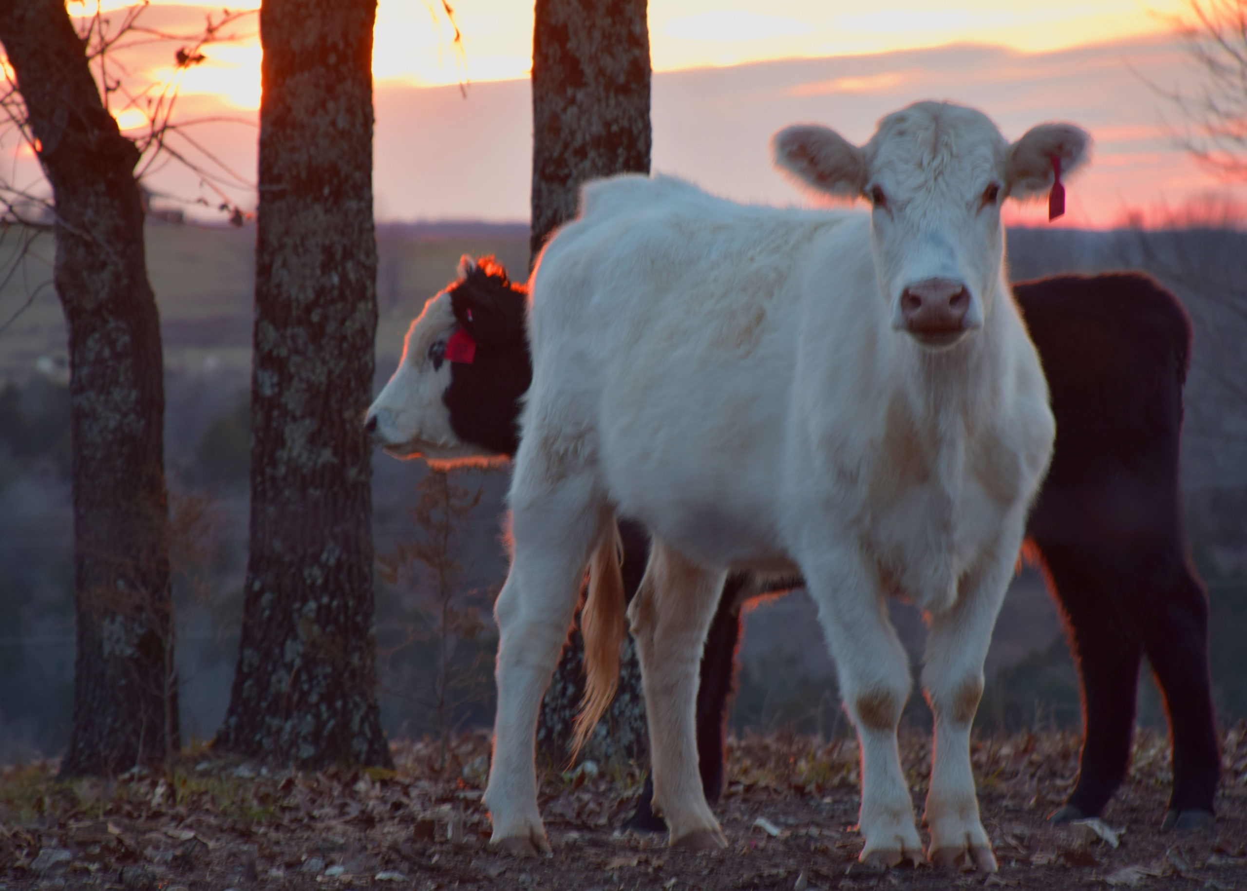 In the photo above, the cattle gather near the road on the ranch next door, back-lit by the Ozark sunset.